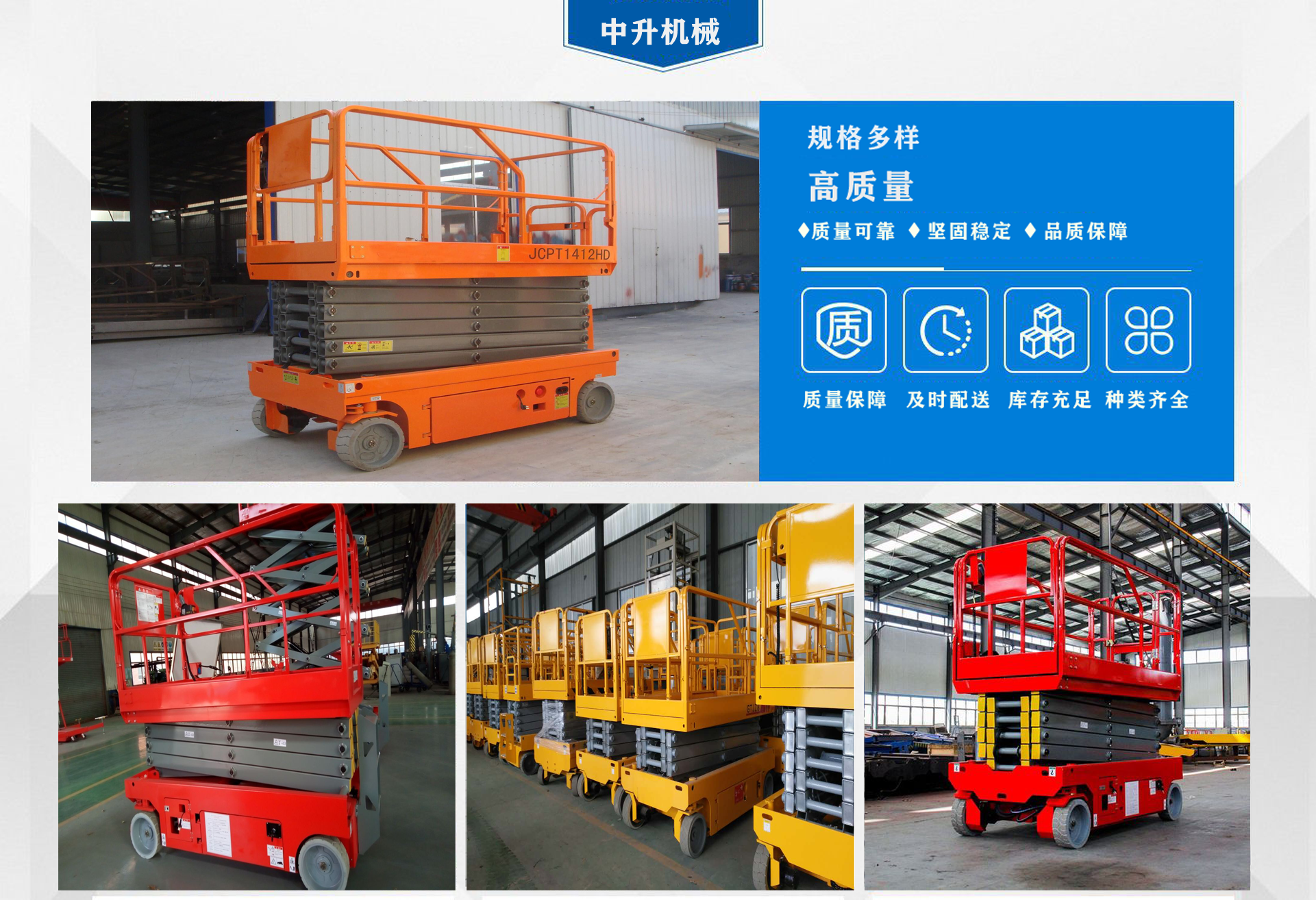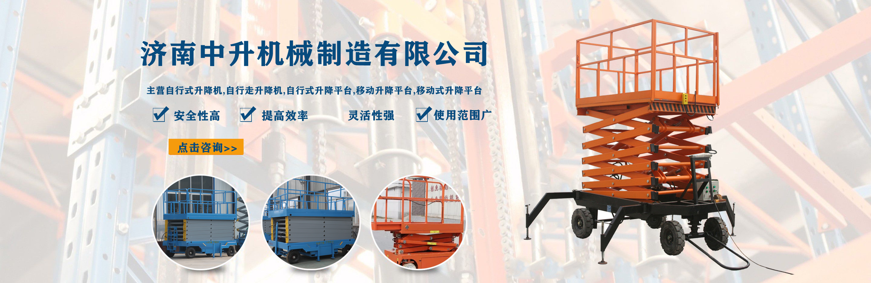濟南中升機械制造有限公司主營自行式升降機,自行走升降機,自行式升降平臺,移動升降平臺,移動式升降平臺等產(chǎn)品,產(chǎn)品廣泛用于廠房維護、工業(yè)安裝、設備檢修、物業(yè)管理、倉庫、航空、機場、港口、車站、加油站、體育場、展覽館等多種行業(yè)和場所, 公司設備精良、工藝合理、檢測手段齊全,技術力量充足,公司創(chuàng)立伊始即本著“專注、專心”的經(jīng)營理念,依托技術團隊優(yōu)勢和設備硬件保障,全力打造良心的升降平臺企業(yè)?! ∥夜臼冀K以“品質為本,服務至上”作為企業(yè)宗旨。只要你訂購了我公司的產(chǎn)品,無論你身處何方,我們都會及時派出技術人員為你服務!...